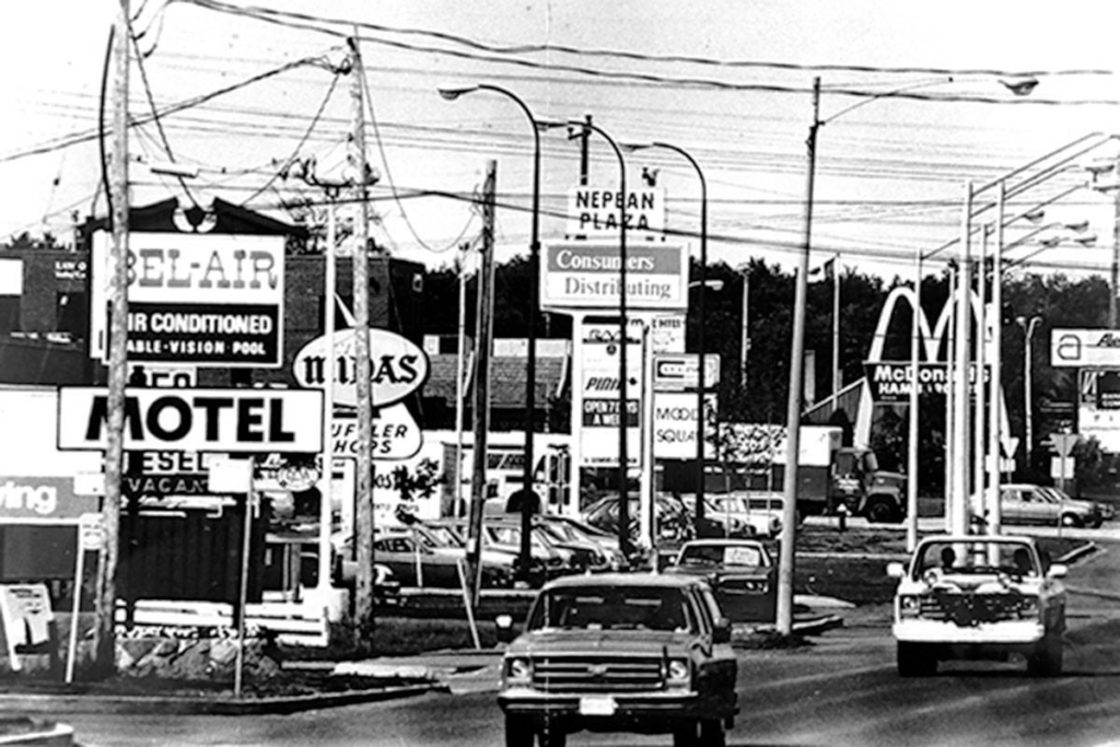 Downtown Bells Corners 1970, last of the ground swelling McDonalds’ arches in the background still existing to this day where I worked until 1979 when we moved to Fresno, California USA.